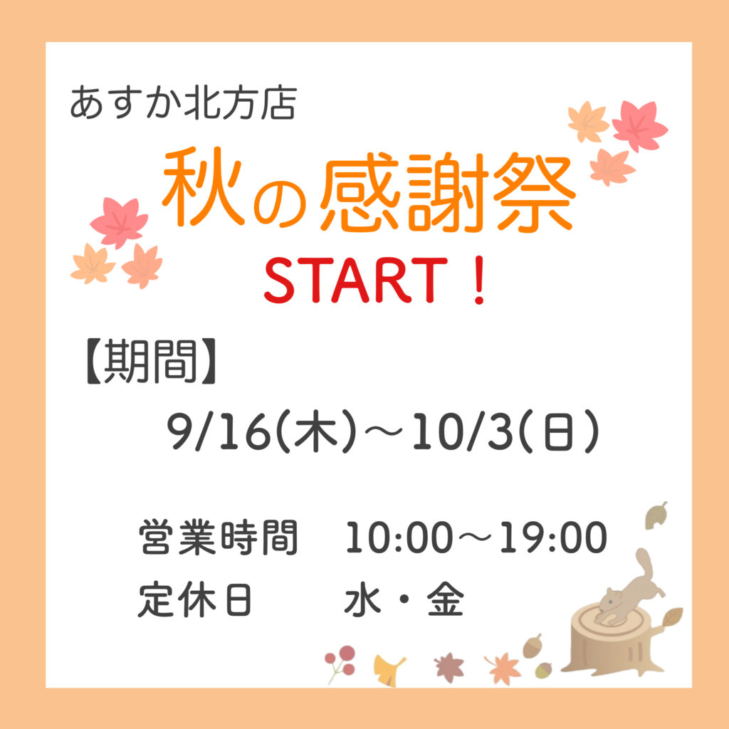 10/3(日)まで秋の感謝祭開催しています❗️