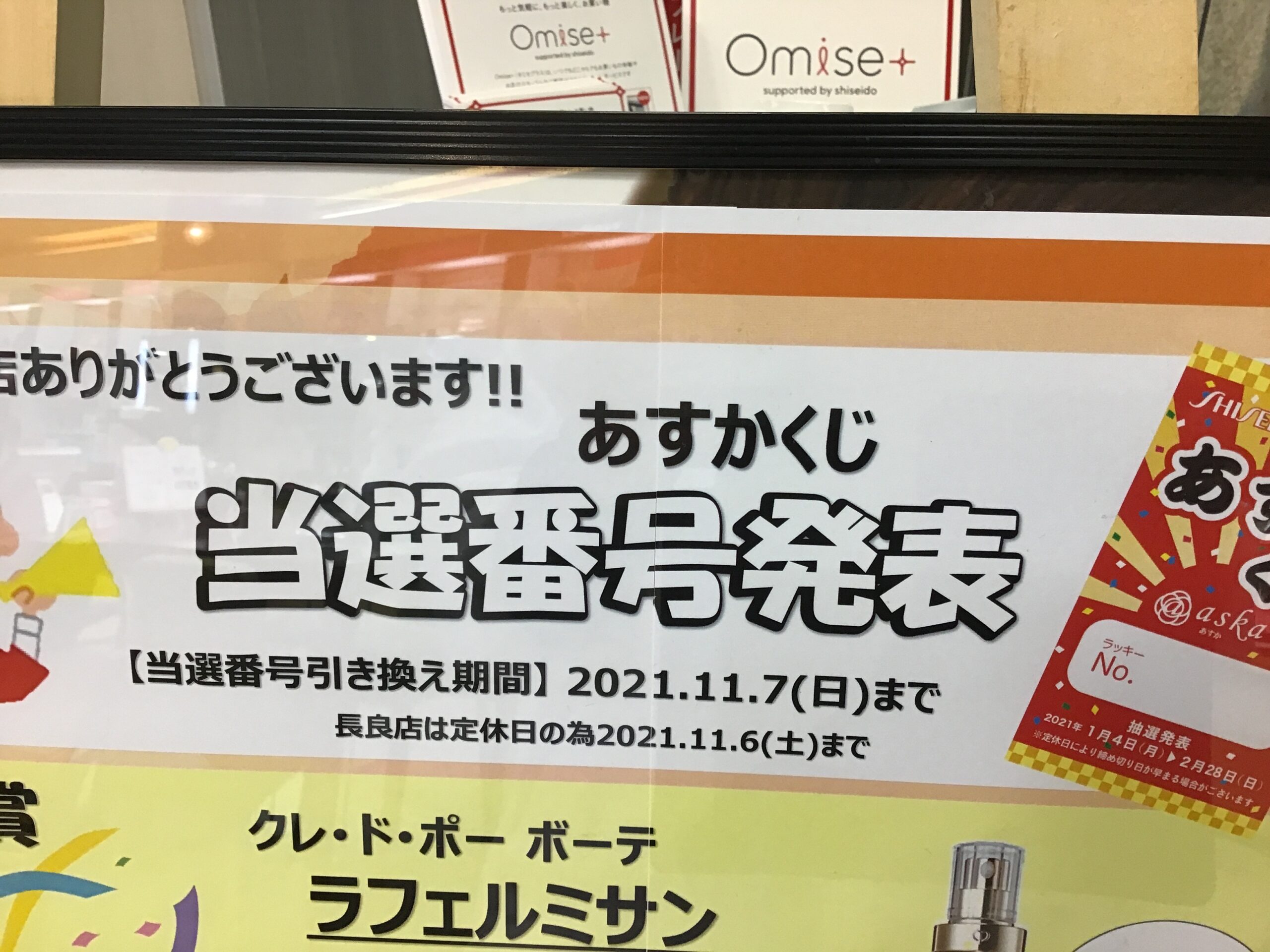 あすかクジ引き換え本日11/7(日)までのお知らせです