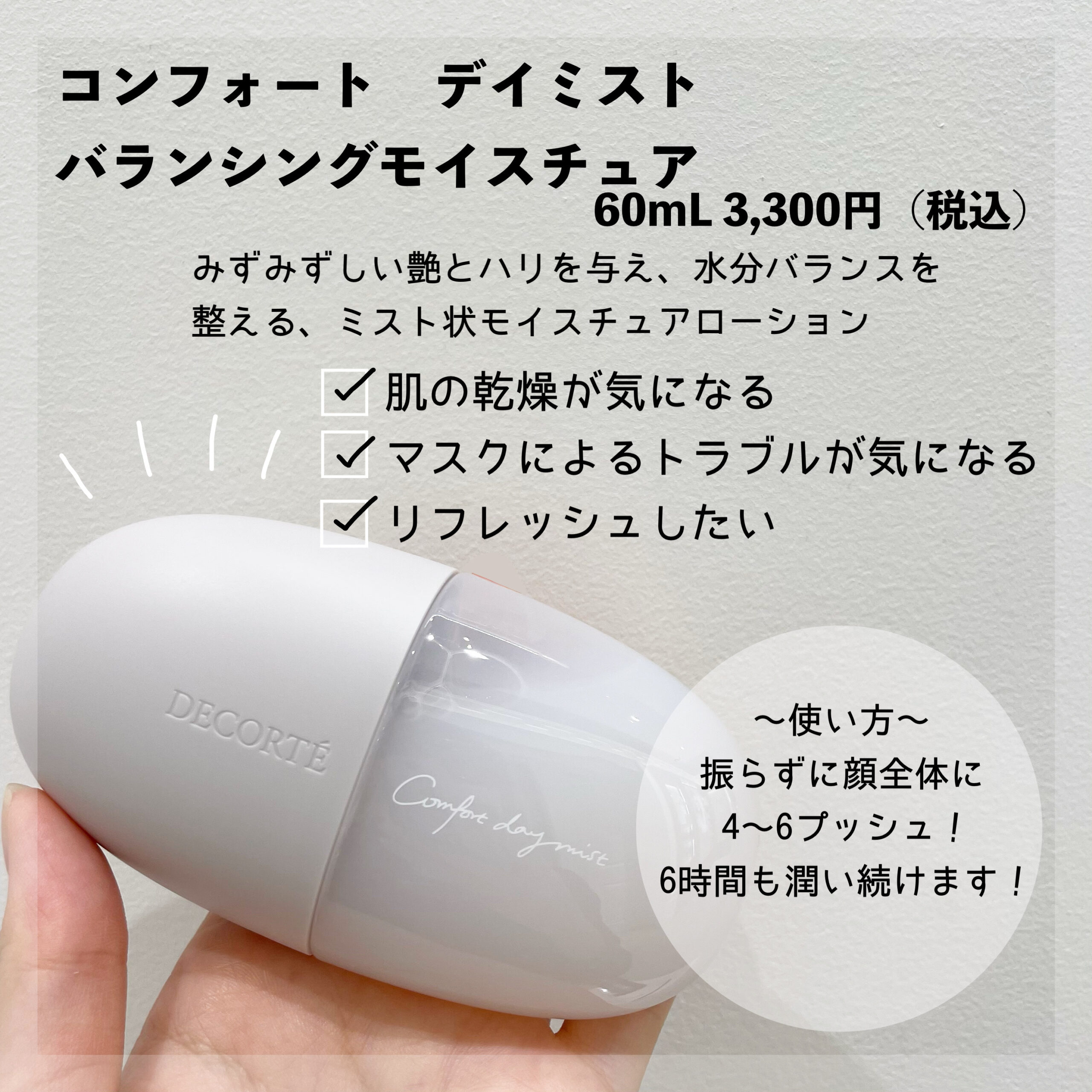 🌟コンフォートデイミストバランシングモイスチュア 60mL 3,300円(税込)