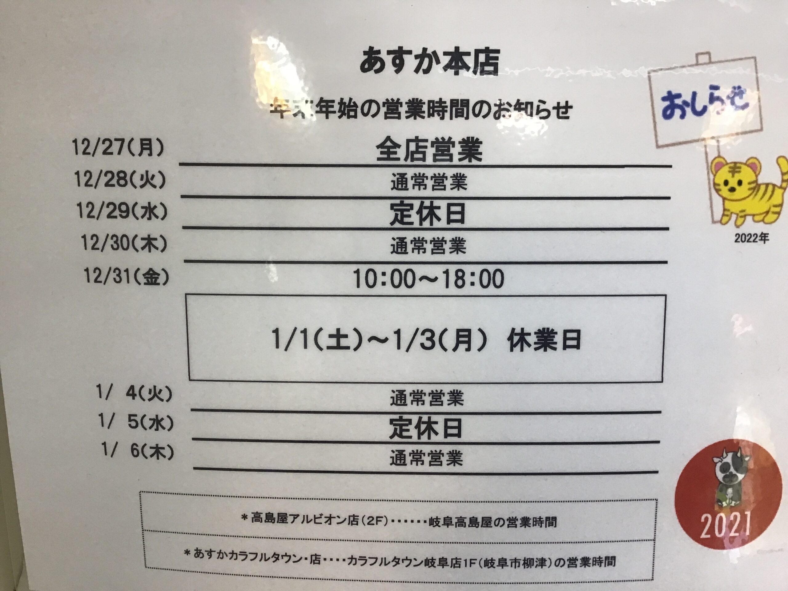 こんにちは化粧品専門店あすか本店です 本日はお知らせです