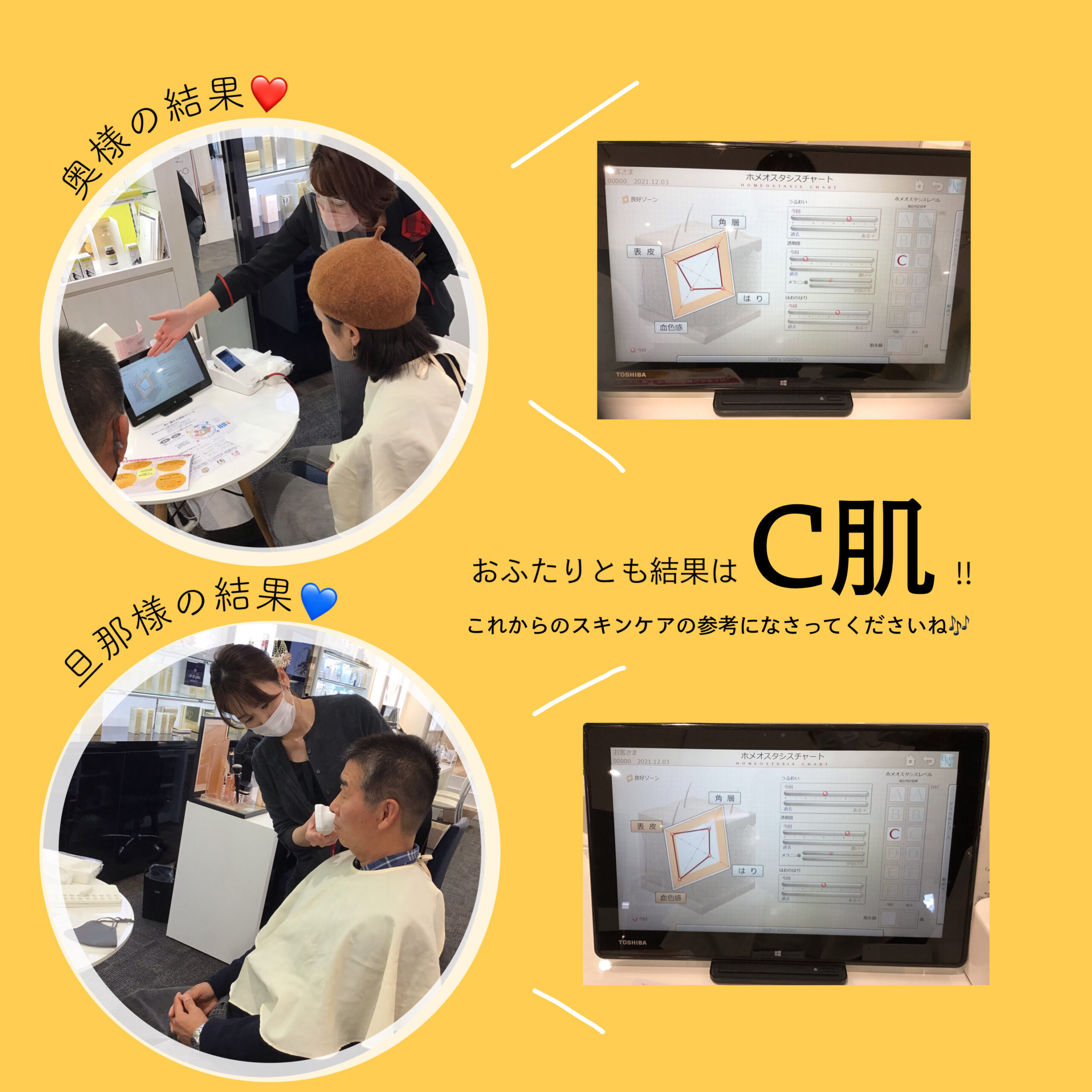 ご主人も、シワが気になる…と美意識が高く、肌について興味を持って、聞いて下さいました。結果はCでした!