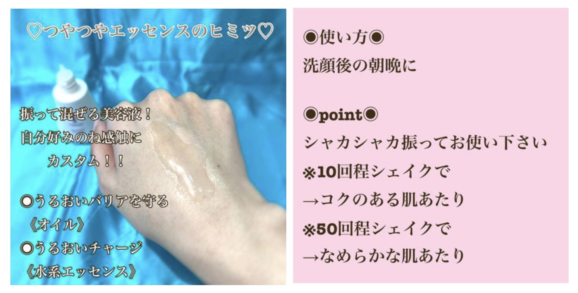 混ぜることであなた好みの感触でお使い頂ける美容液!