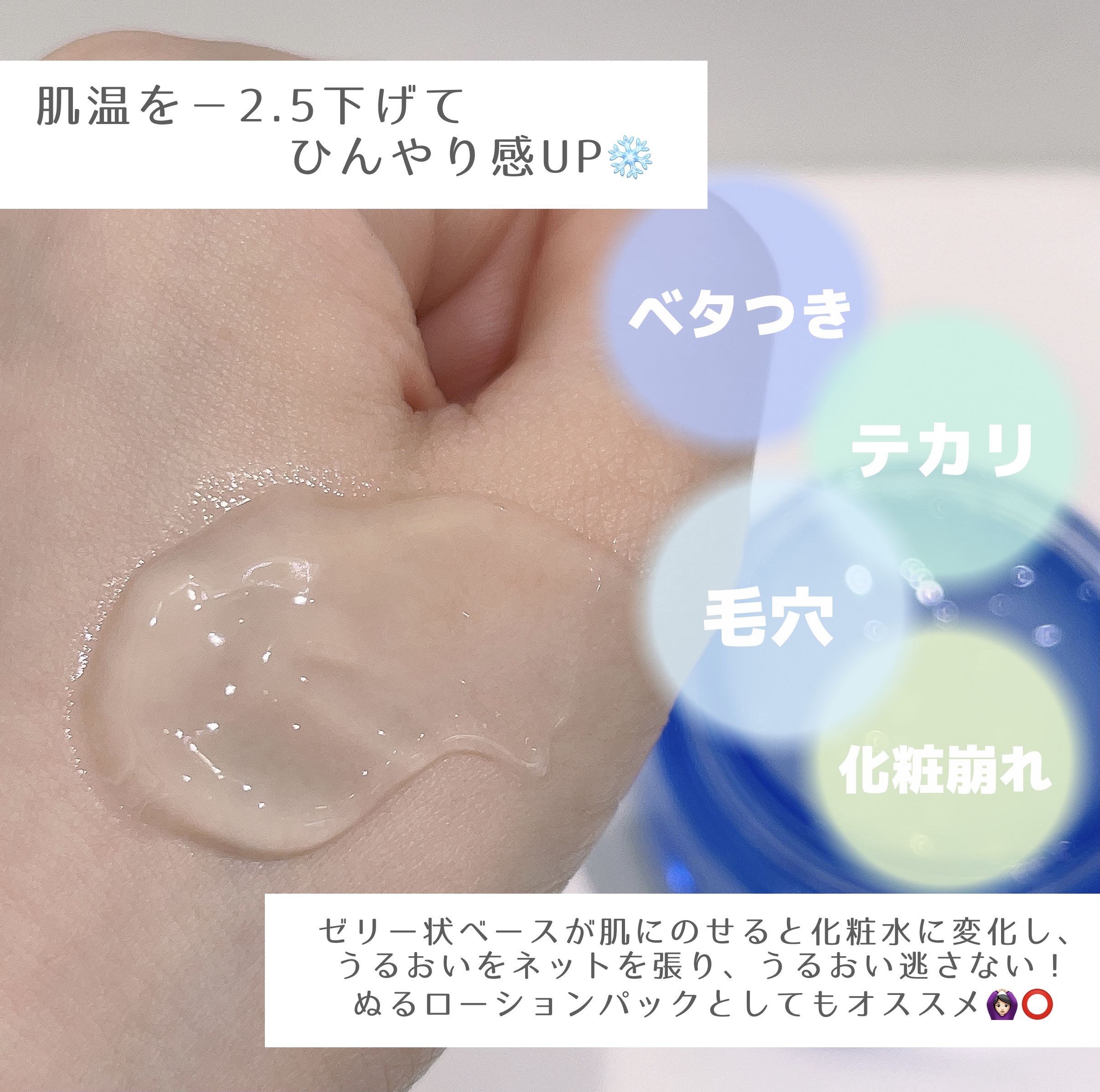 ゼリー状ベースを肌にのばし、塗るローションパックとしても🙆🏻♀️⭕️