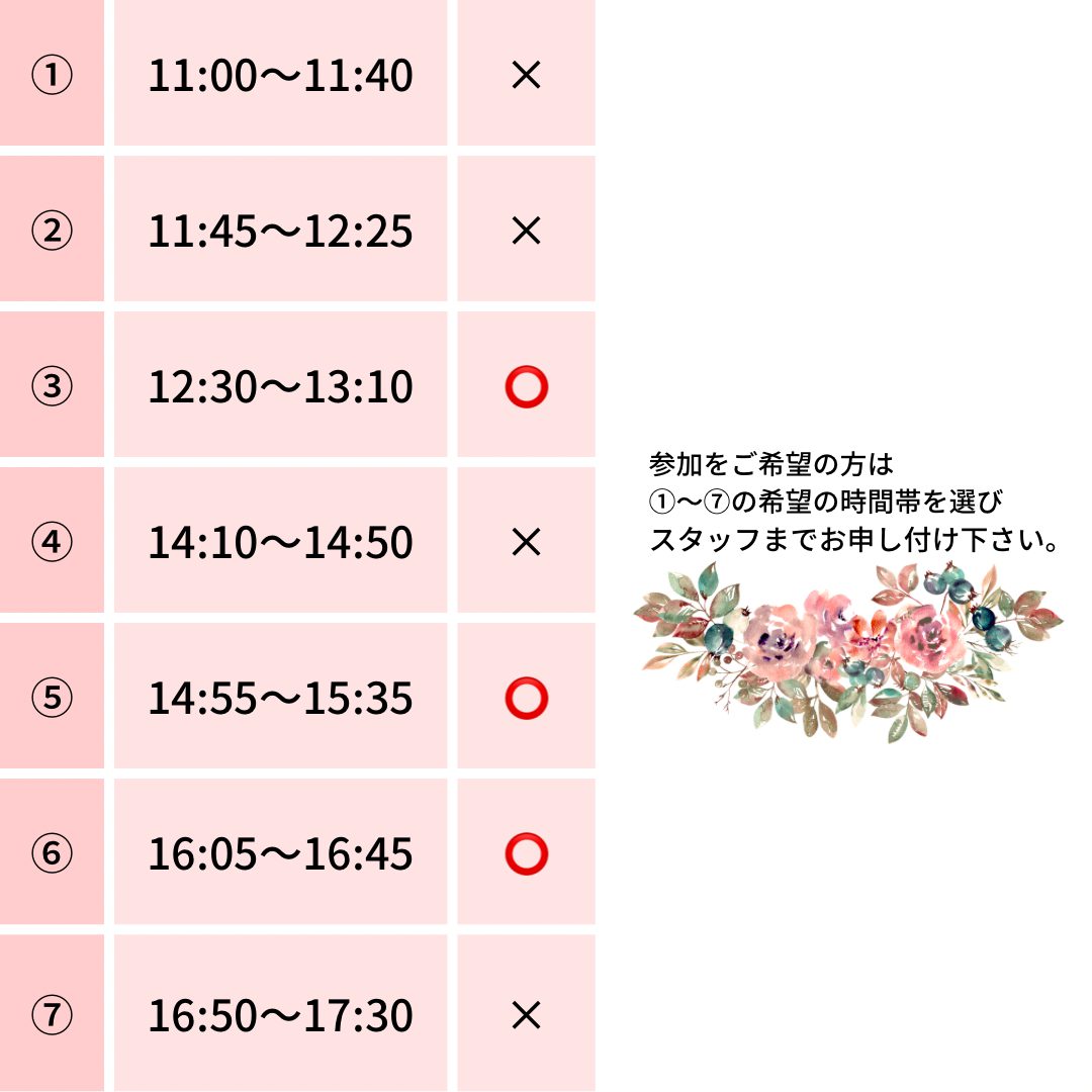 予約枠を①〜⑦までご用意しております。
