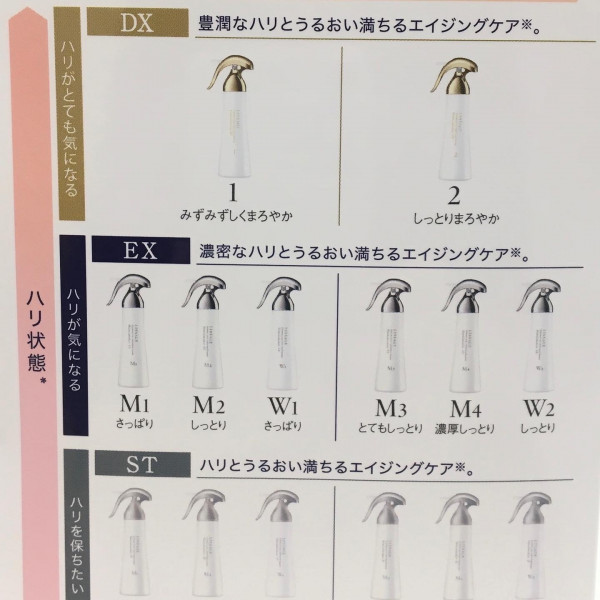 ハリ状態と肌タイプに合わせてお選びできます。