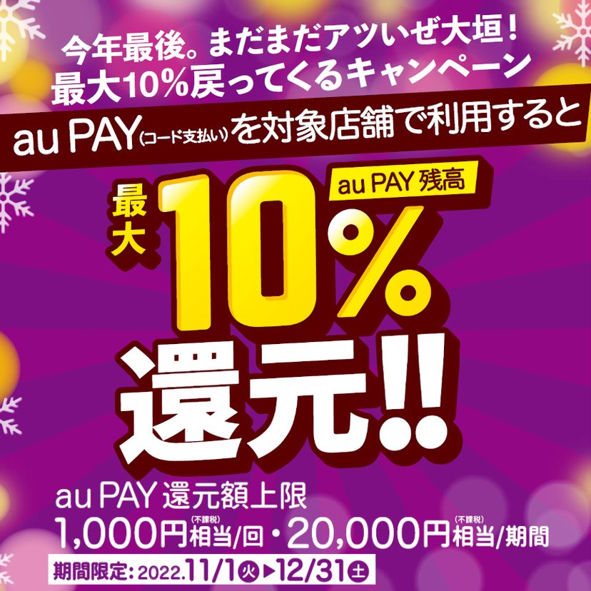 あすか大垣店でPAYPAY、au PAY、d払いでお支払いすると最大10%戻ってきます。