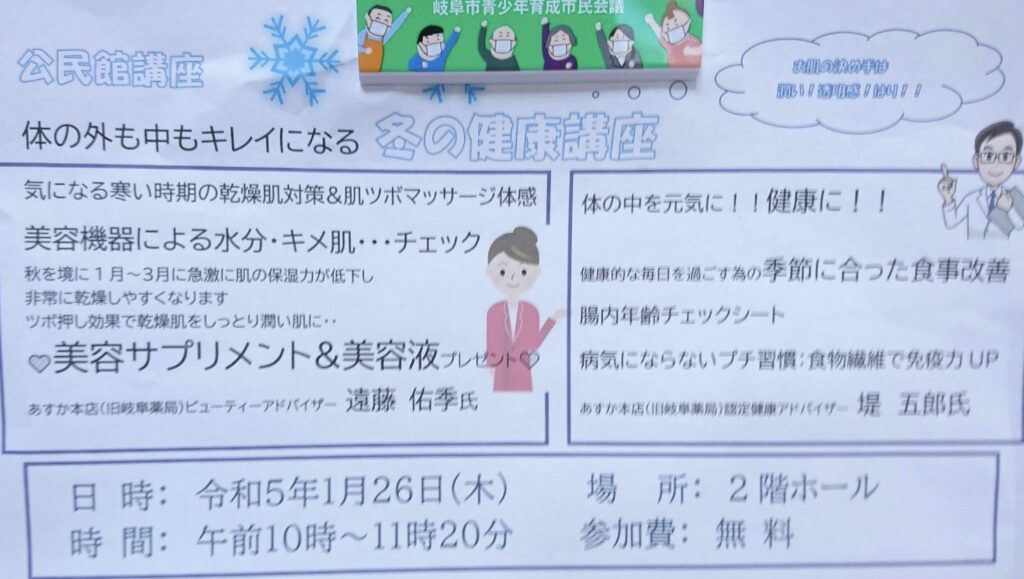 今年1回目、テーマは 身体の外も中もキレイになる「冬の健康講
