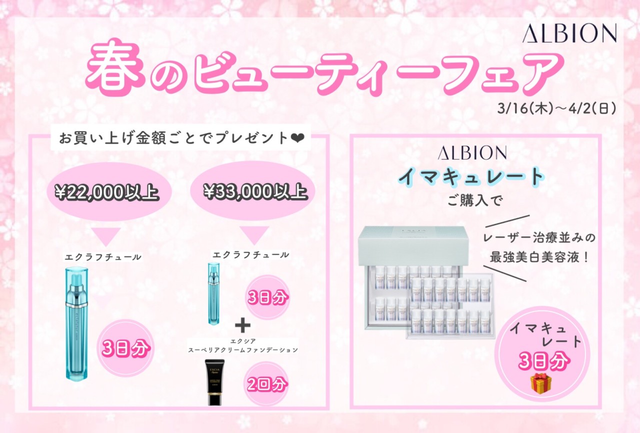 春のビューティーフェアを3/16(木)〜4/2(日)まで開催いたします