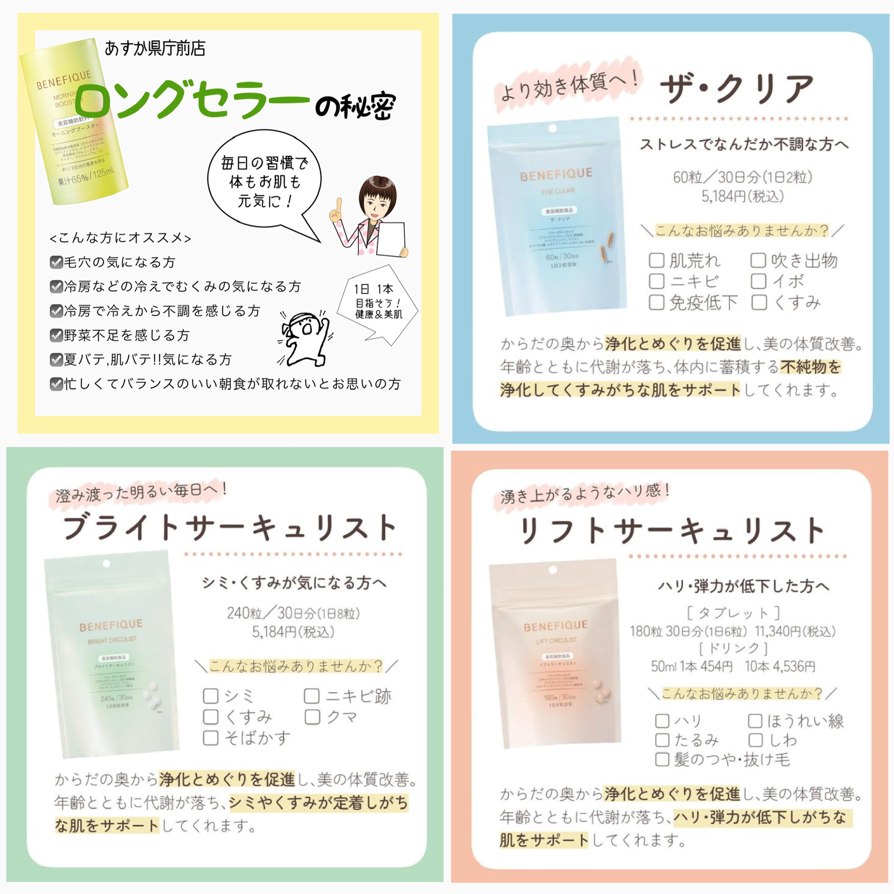 『ザクリア』『モーニングブースター』『コラーゲン』