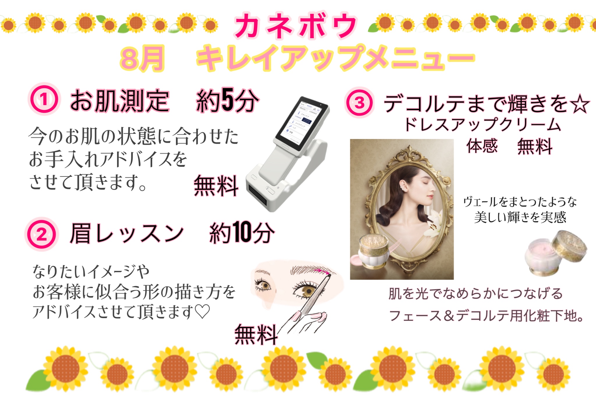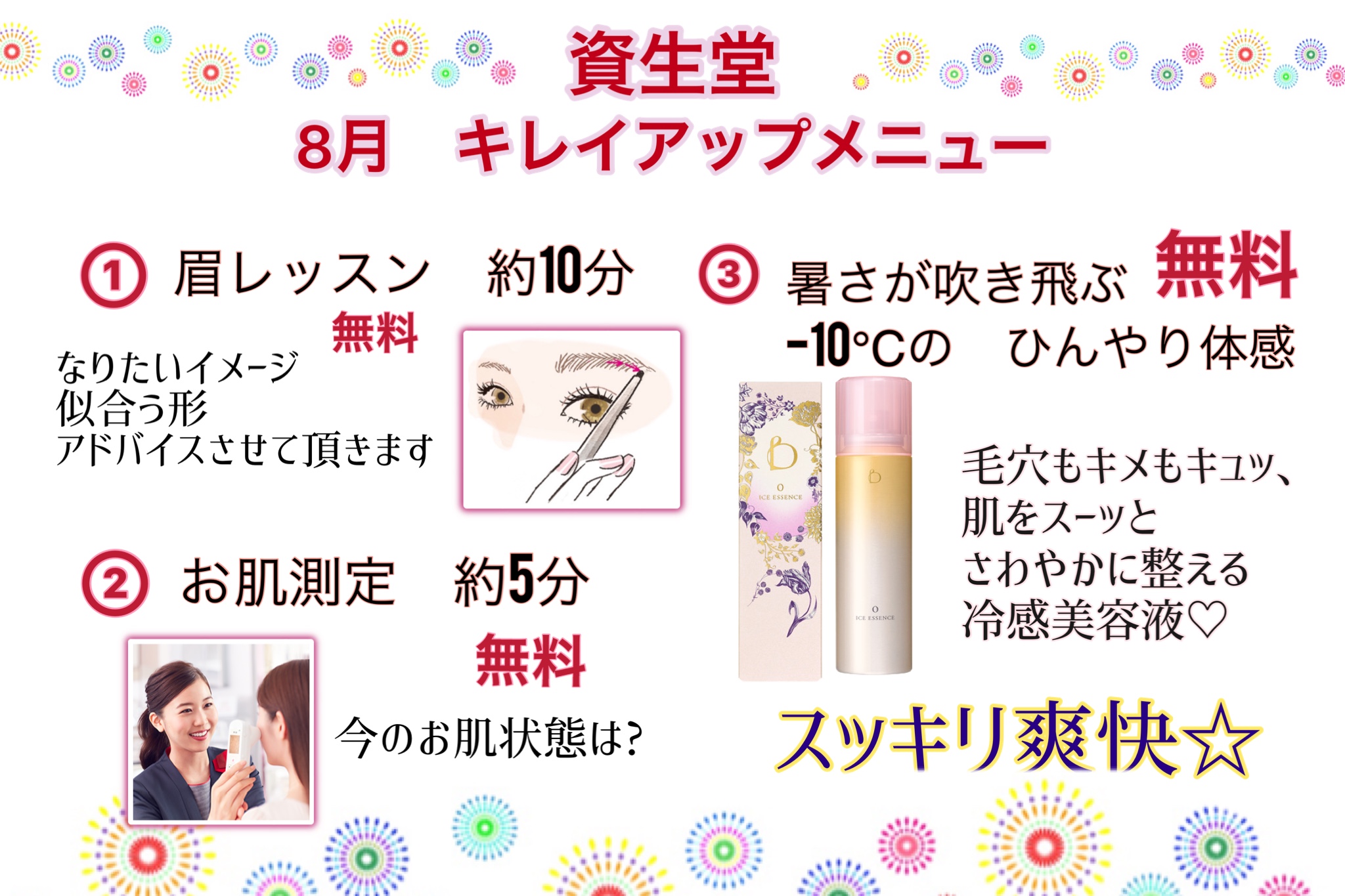 各メーカー、肌測定・眉レッスン・今話題の商品の体感ができます😍