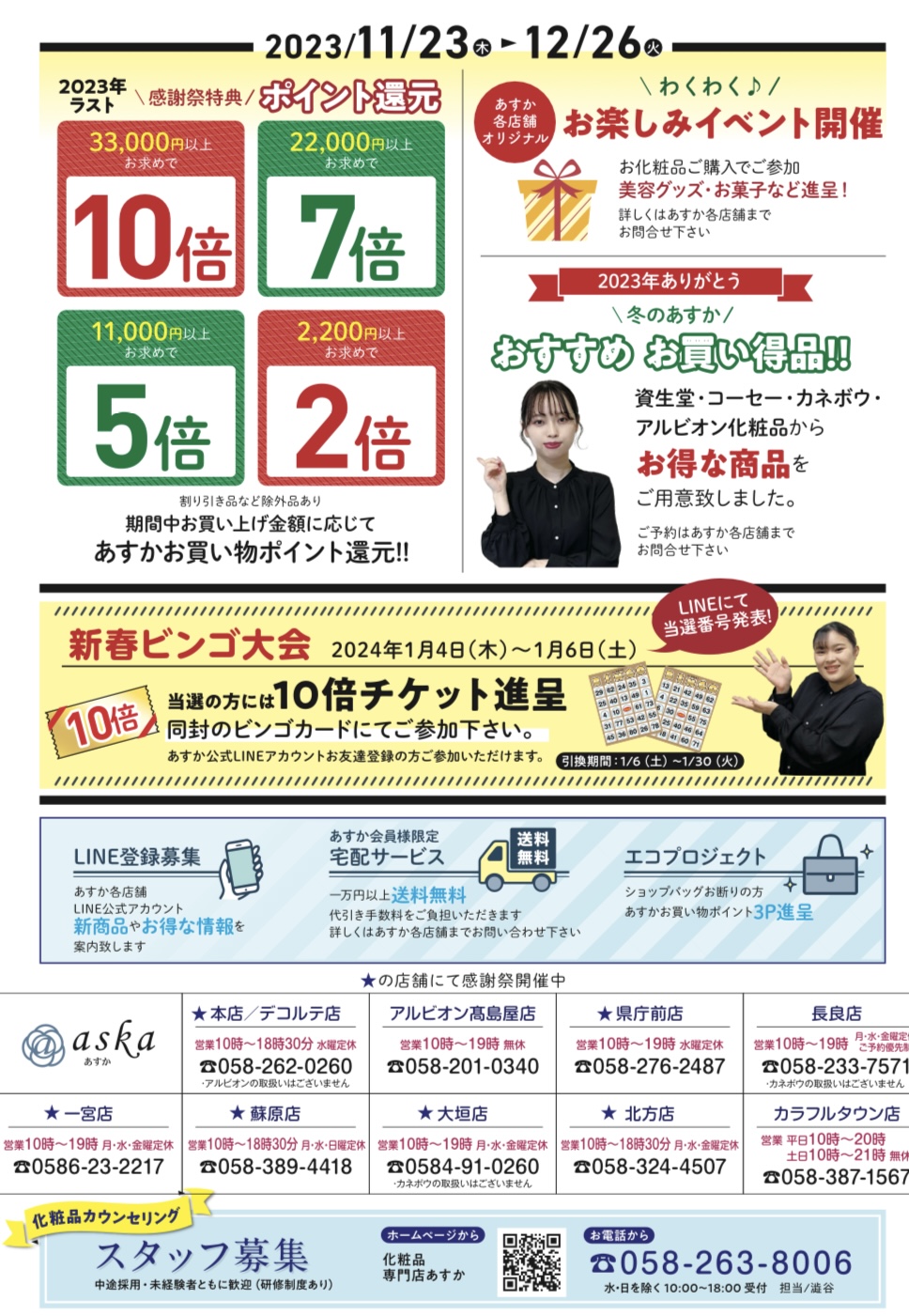(あすか長良店、アルビオンあすか岐阜高島屋店・あすかカラフルタウン店は除外)