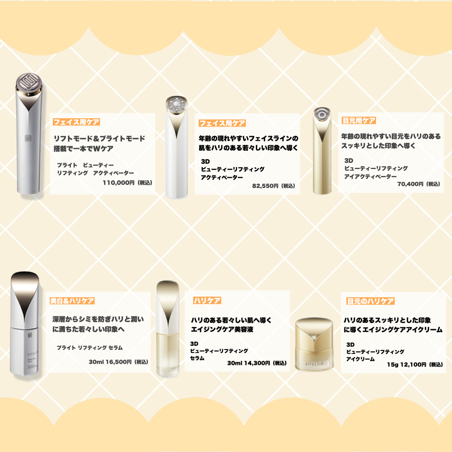 他にも目元用や、リフトアップ専用の美顔器や美容液もございます。