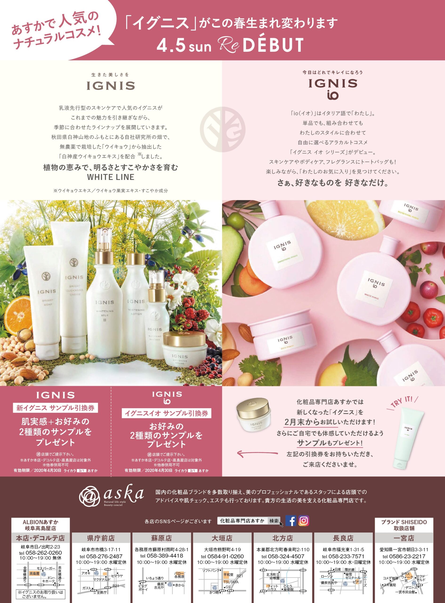 あすか本店・アルビオンあすか岐阜高島屋店はイグニスの取り扱いがございません。