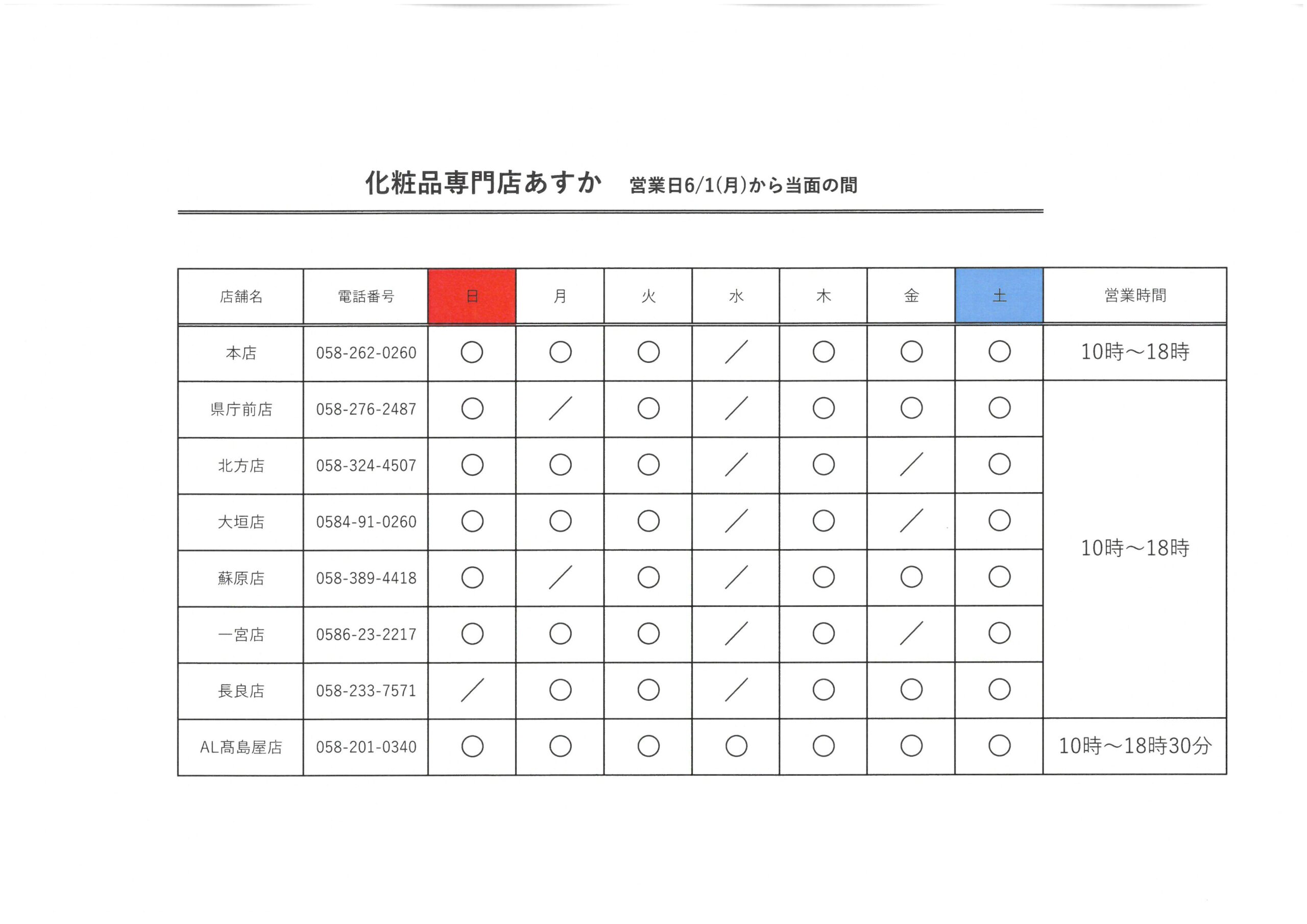 また、2020年6月1日(月)以降の当面の間の営業日時は以下の通りをなっております。