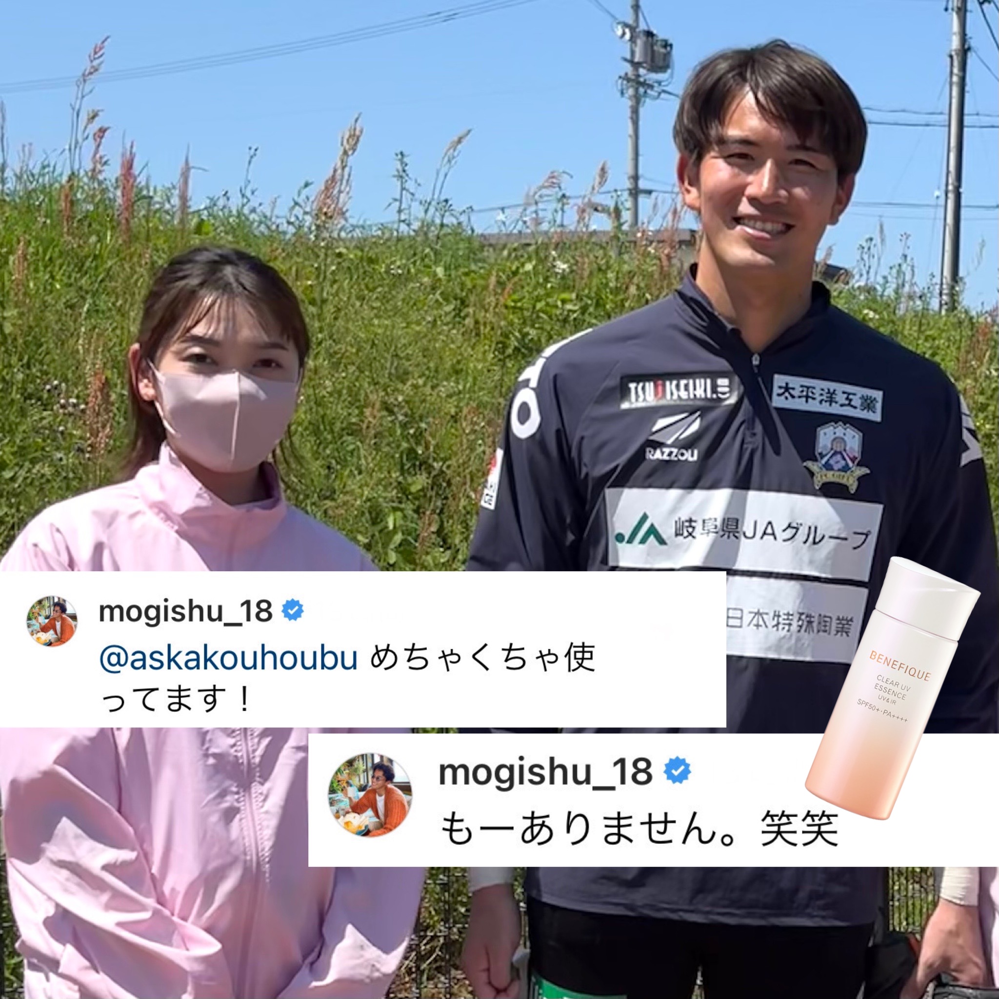 そして、FC岐阜の“茂木秀”選手からベネフィークの日焼け止めのコメントをいただきました!(^○^)