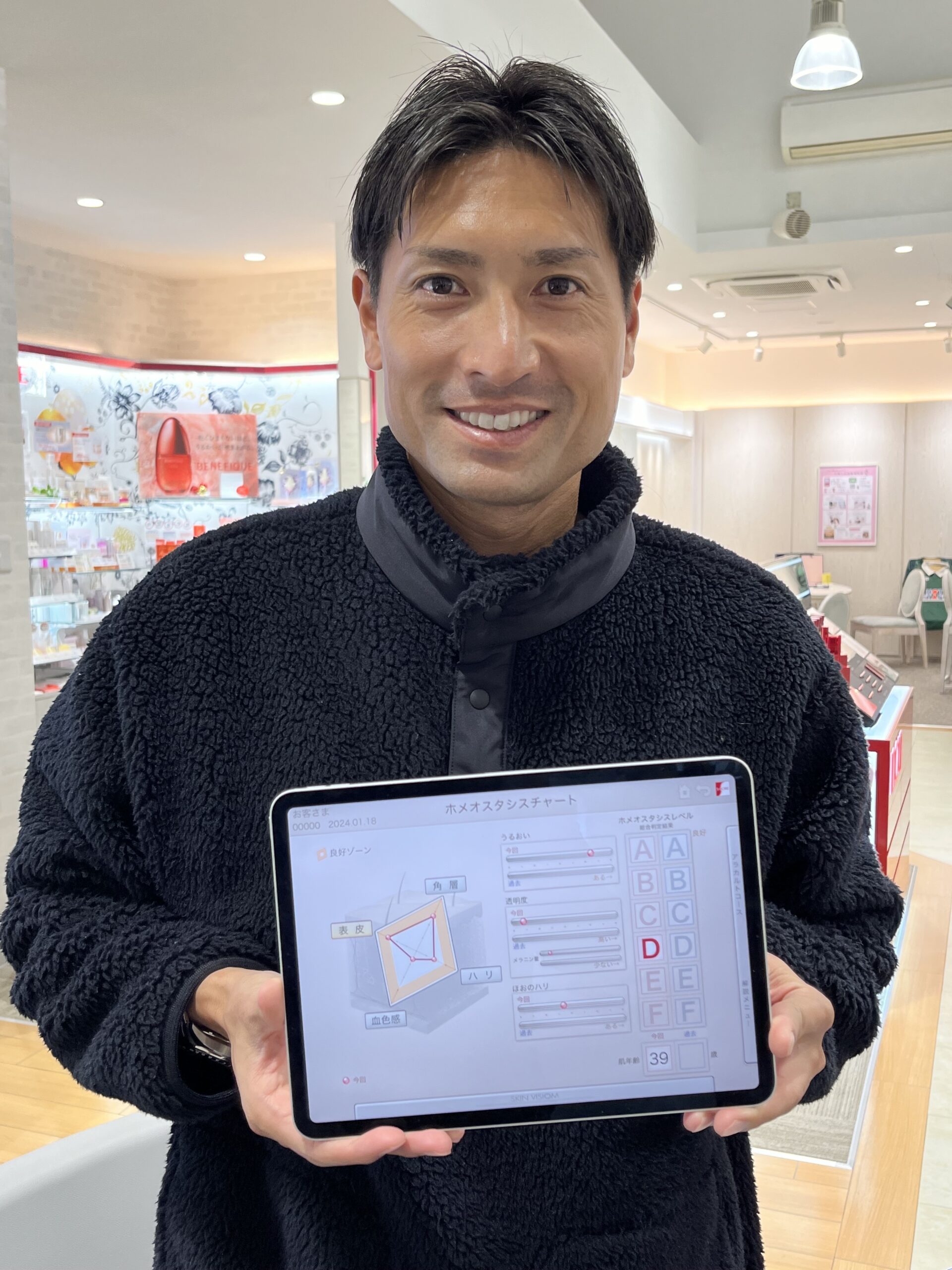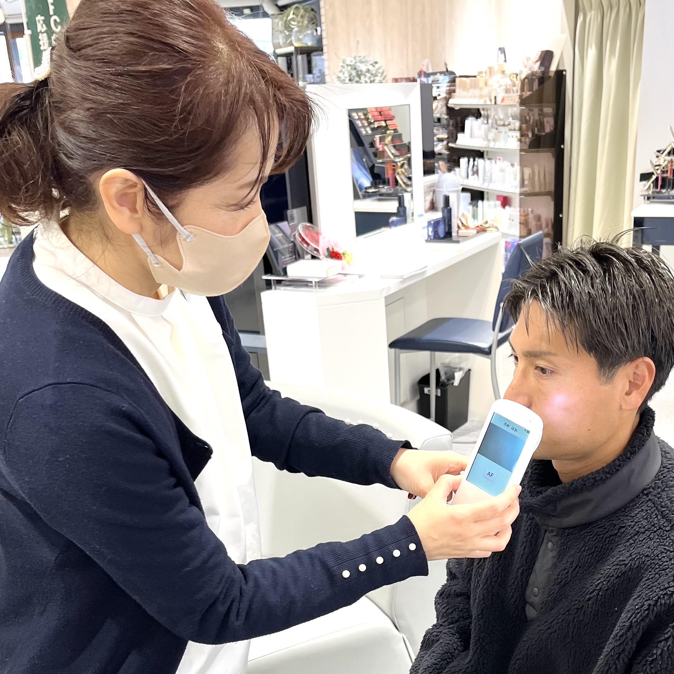 お2人ともお肌チェックの後に、奥様はコスメデコルテAQシリーズでフェイ