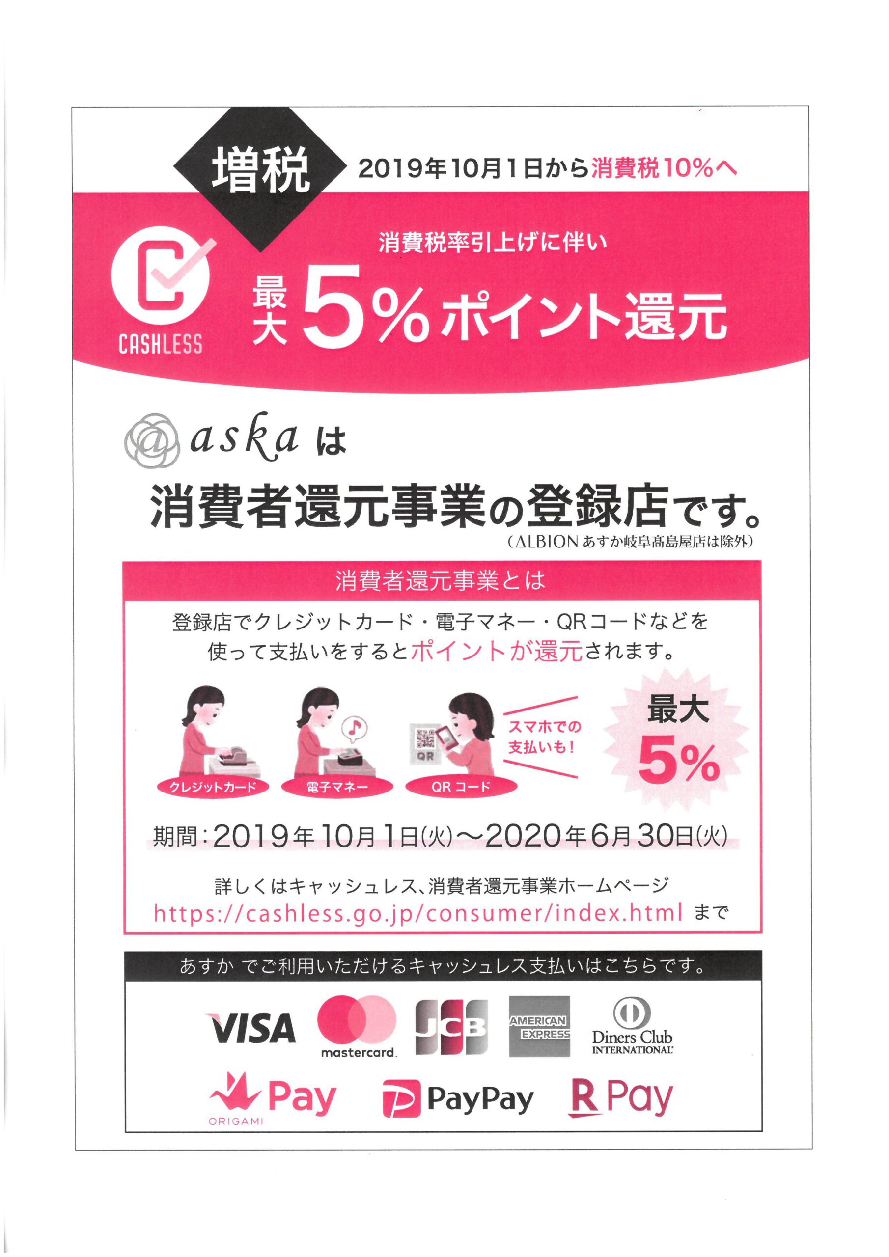 あすか各店も対象店舗となっております。(アルビオンあすか髙島屋店は除きます。)