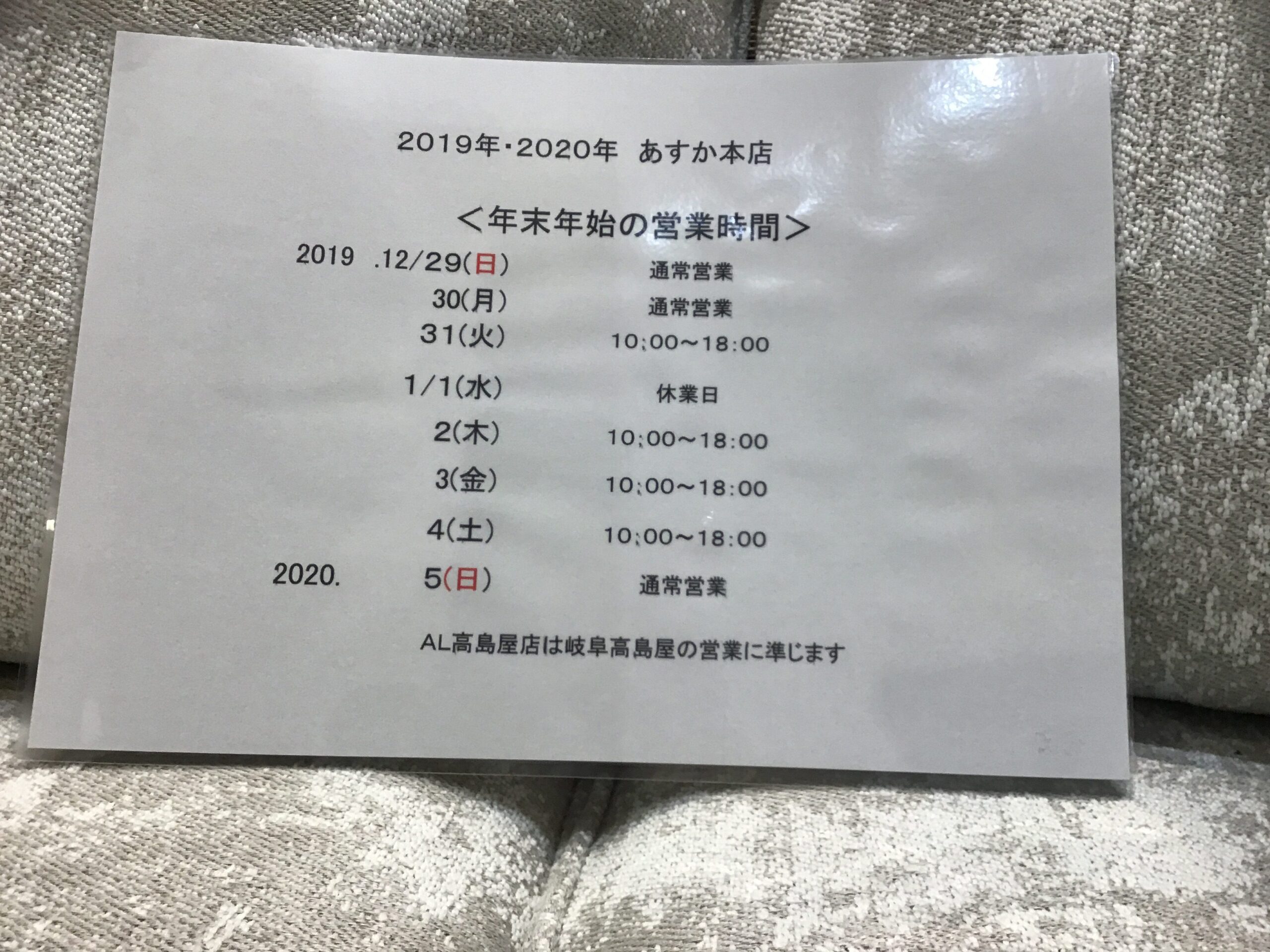 年末年始営業時間 あすか本店