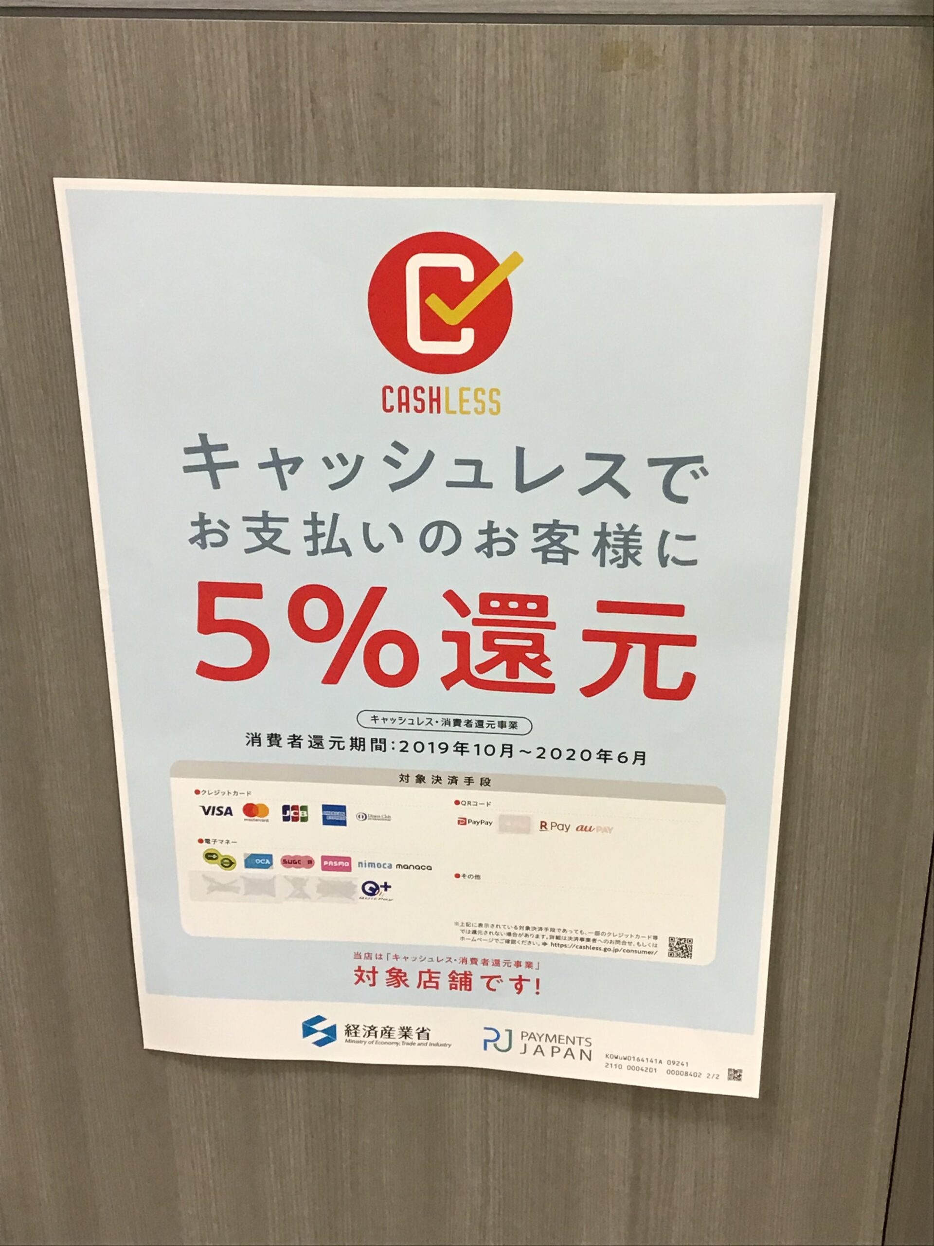 キャッシュレス 5%還元 2020 6月迄