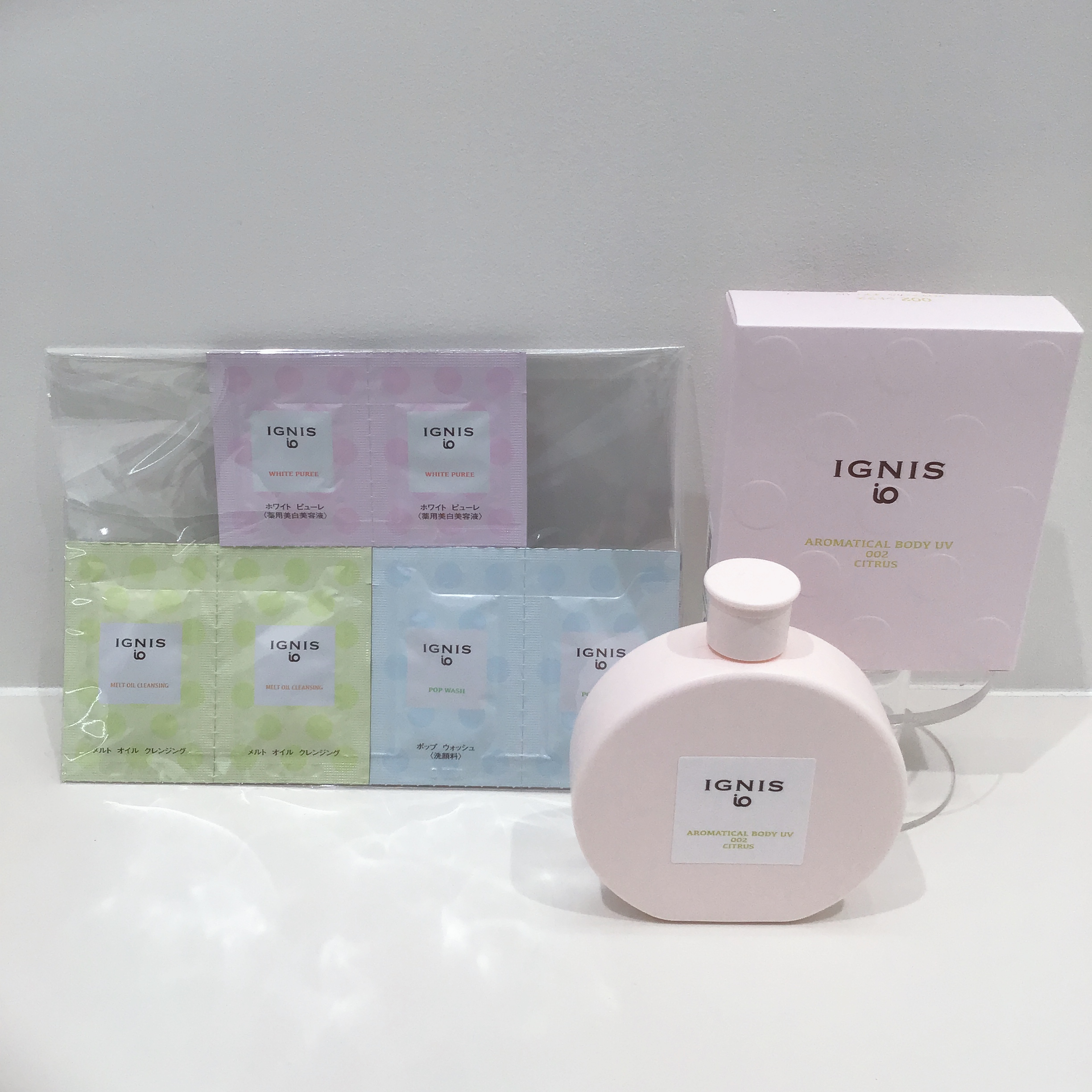 イグニスイオアロマティカルボディUVご購入で、お肌に合わせたイグニスイオのクレンジング•洗顔•美容液サンプルプレゼント?