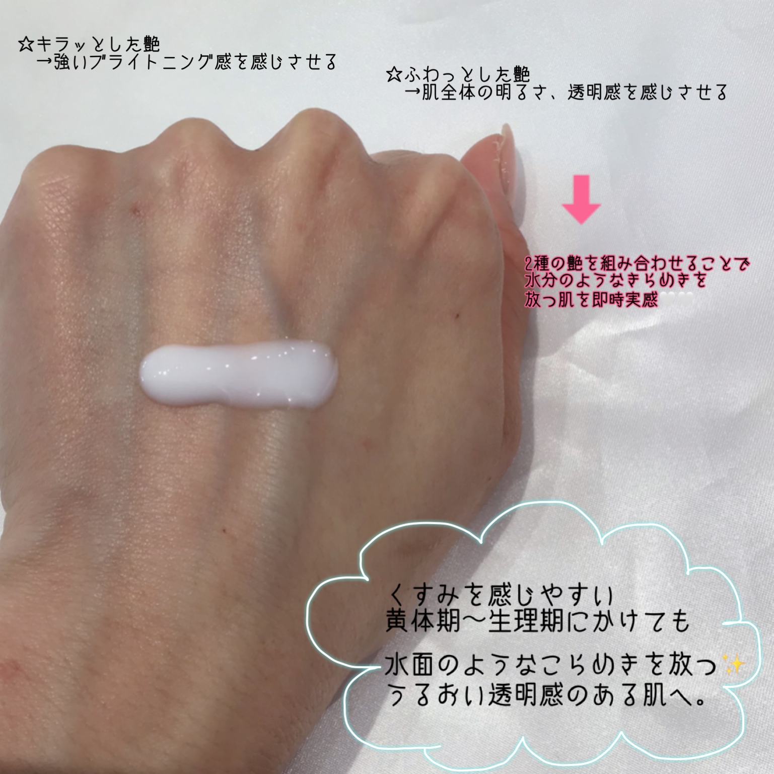 光を反射し、瞬時に肌を明るく艶やかに