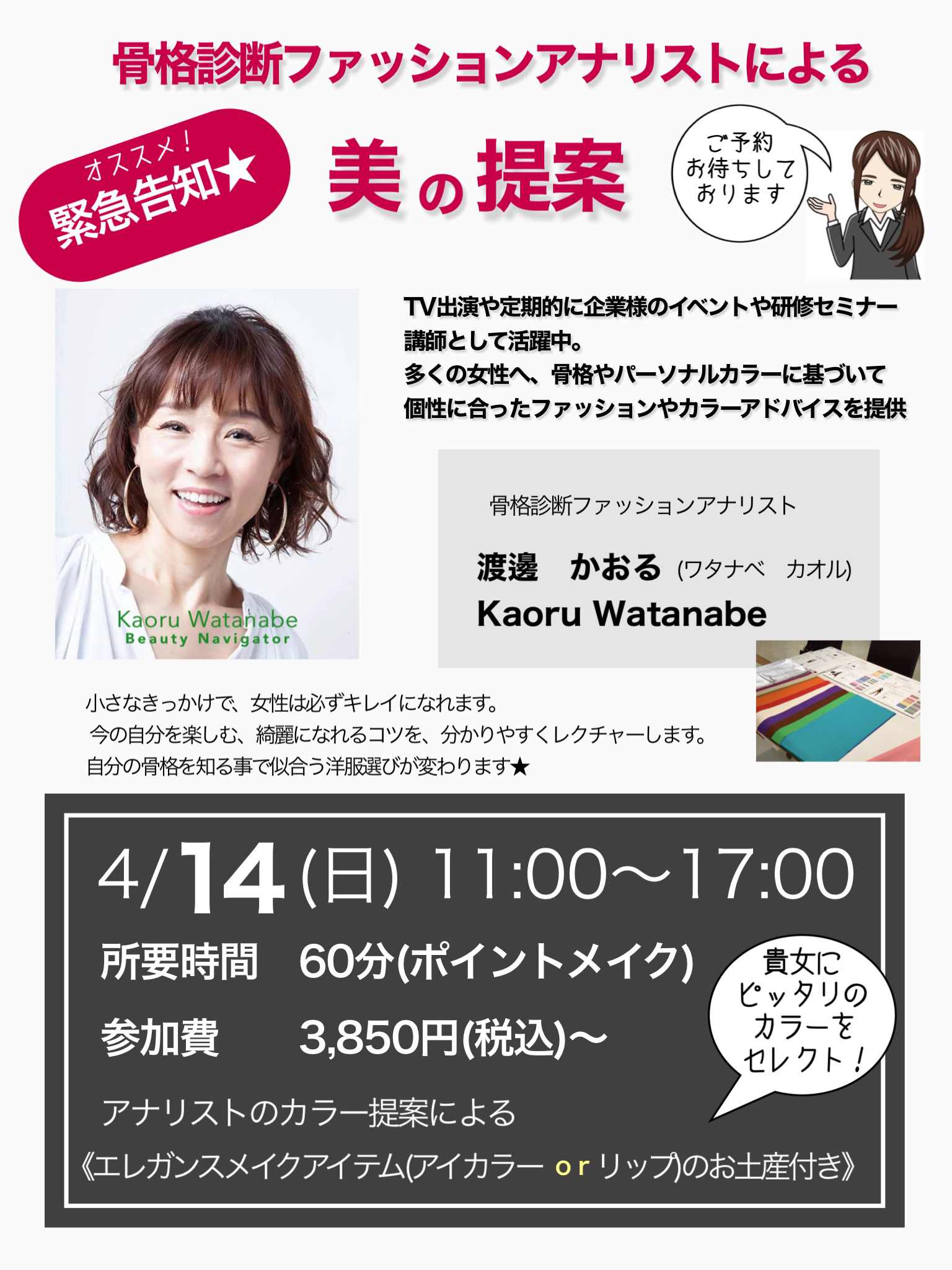 🌈パーソナルカラー診断&骨格診断イベントのお知らせ🌈県庁前店